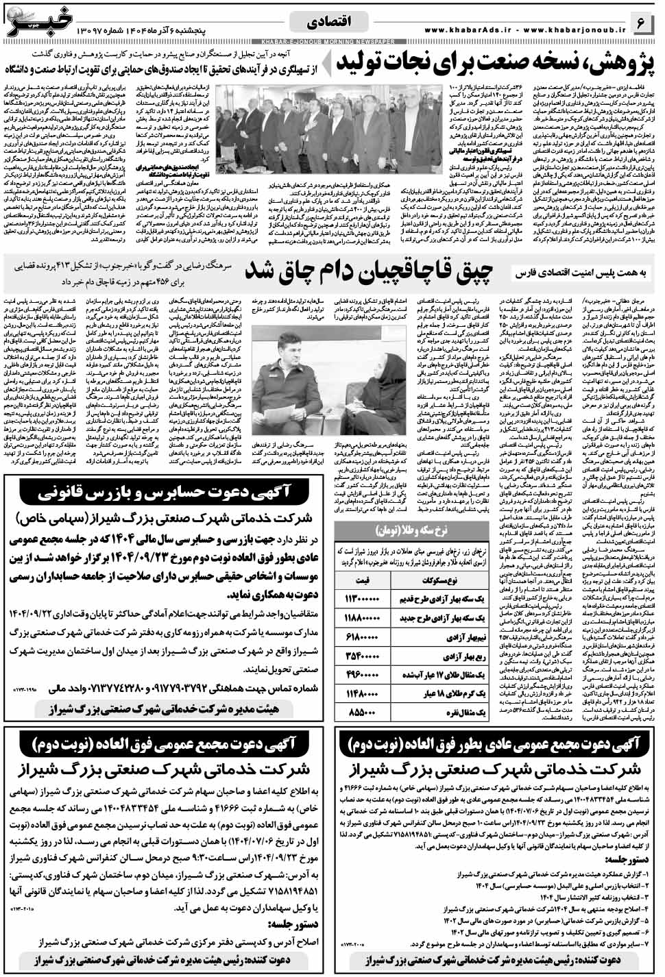 شرکت خدماتی شهرک صنعتی بزرگ شیراز (سهامی خاص) در نظر دارد جهت بازرسی و حسابرسی سال مالی 1404 که در جلسه مجمع عمومی عادی بطور فوق العاده نوبت دوم مورخ 23/09/1404 برگزار خواهد شد از بین موسسات و اشخاص حقیقی حسابرس دارای صلاحیت از جامعه حسابداران رسمی دعوت به همکاری نماید.